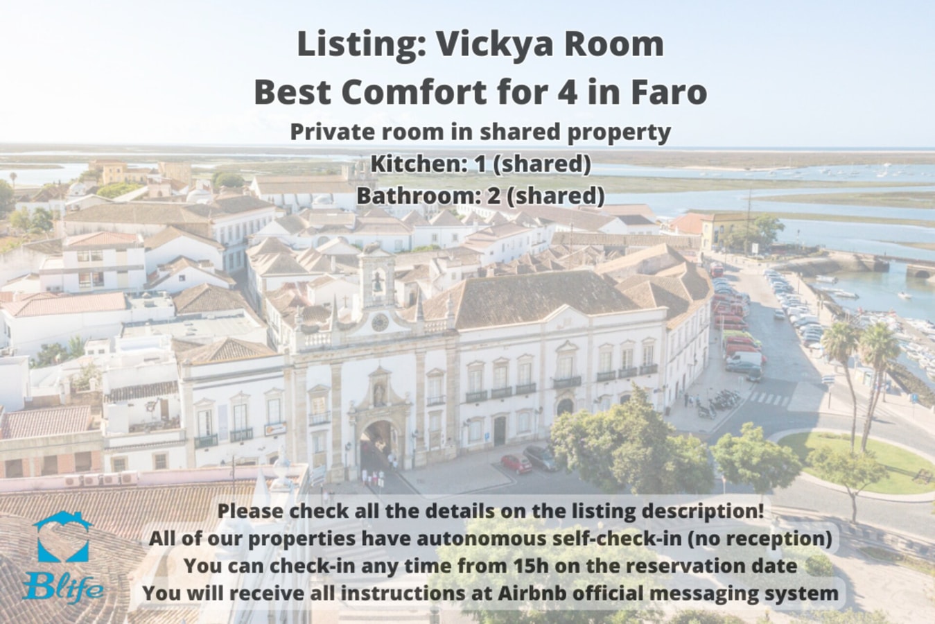 We are BLife Rentals and all our properties have self check-in with safes, you can enter at any time during your reservation :) Click on "show more" for all other details. This room located in an apartment 1500mts from the walled historic center, is the best choice for a comfortable stay and to see all the highlights of Faro and ideal for spending a peaceful vacation. Vicya Room is the choice. Don't miss out! Book now :) *VITORYA*