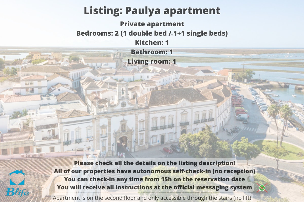 We are BLife Rentals and all our properties have self check-in with safes, you can check in anytime within your booking :) Click on "show more" for all other details. A fully renovated beach apartment, well equipped and just a few steps from the sea. It is on the 2th floor with a fantastic view of the Ria Formosa (no lift). Paulya Apartment is the choice. Don't miss it! Book now :)