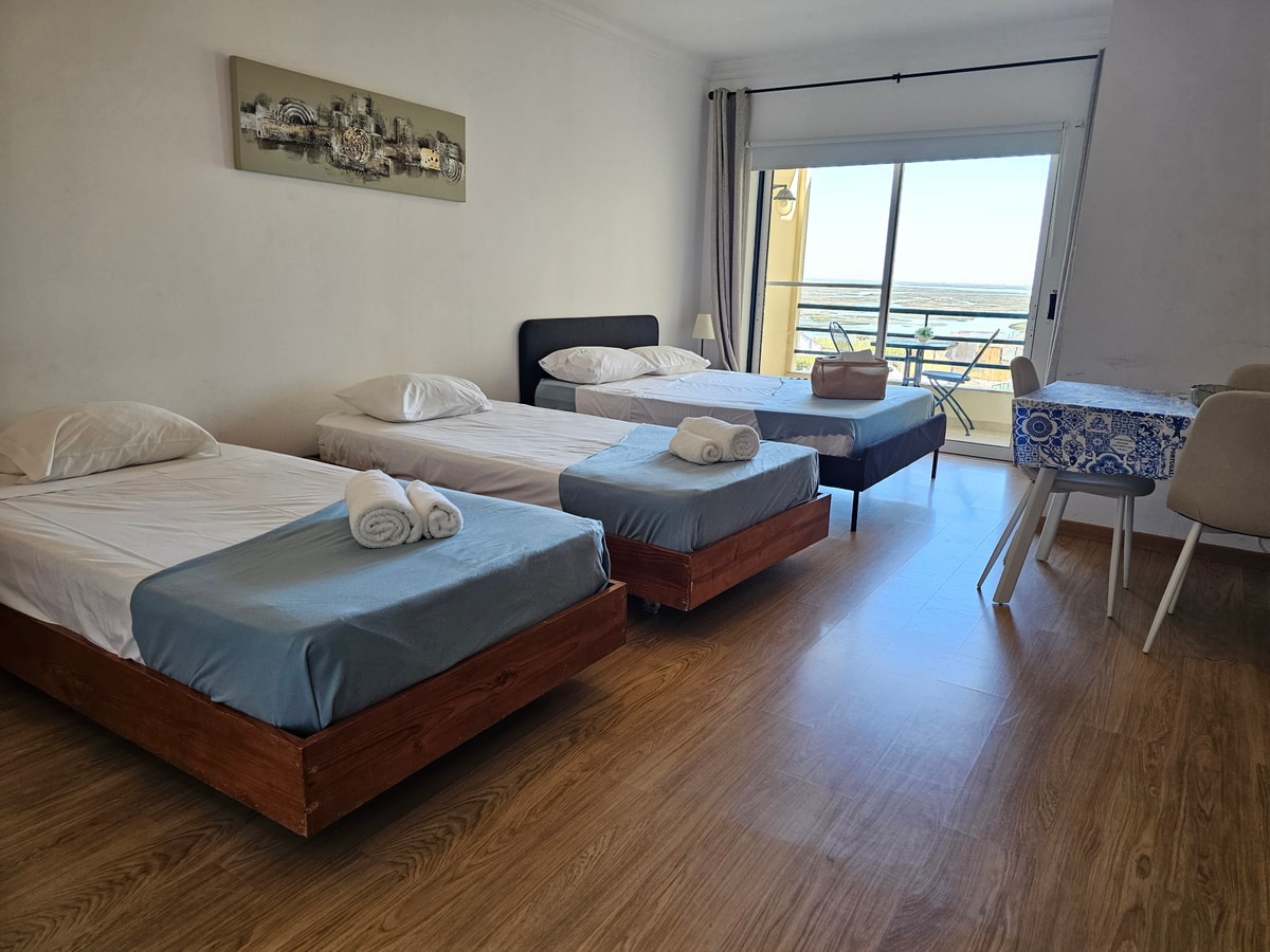You will find two nice balconies outside where you will enjoy a nice meal outdoor and a view to the southern islands and natural Reserve "Ria Formosa".