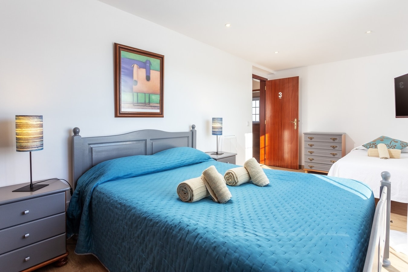1 bedroom with a double bed and a single bed;